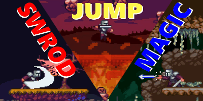 ジャンプ、剣攻撃、魔法攻撃の3種類のシンプルな操作方法でサクサク進む横スクロールアクションゲームです